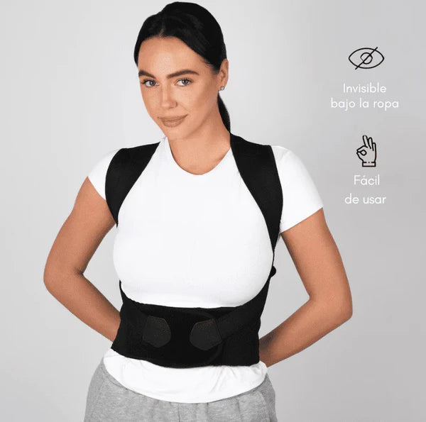- Un corrector de postura ajustable, diseñado con materiales resistentes y transpirables.