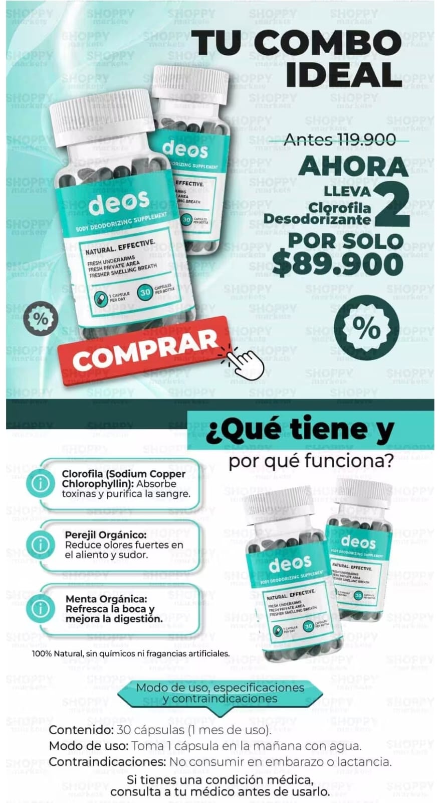 🚀2X1 DEOS DESODORANTE INTERNO 30 CAPS 💊