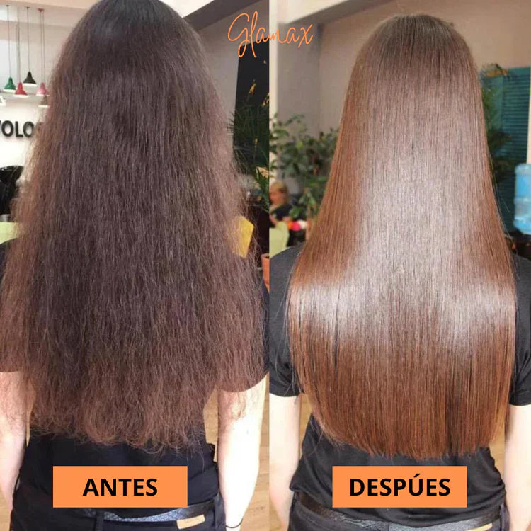 Después: Cabello brillante, suave, sin frizz y con apariencia saludable.
