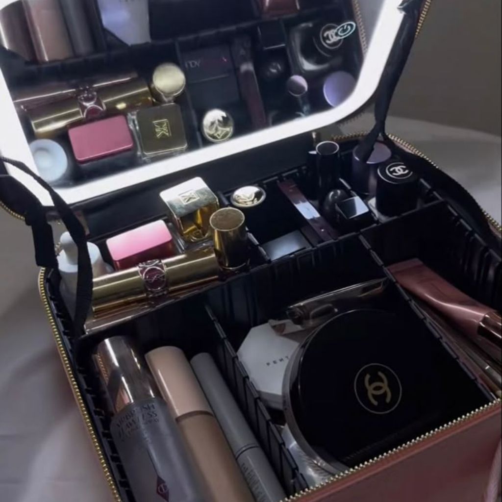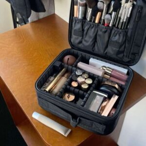 Es lo suficientemente espaciosa para brochas, bases, labiales y más.