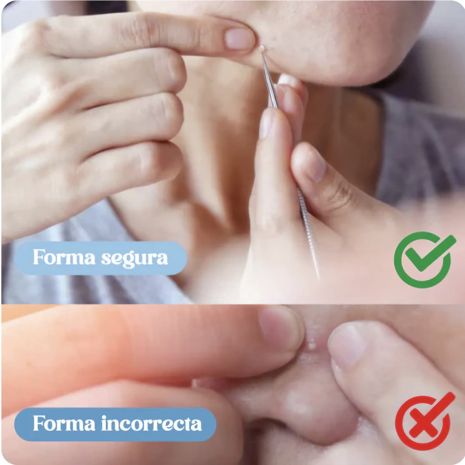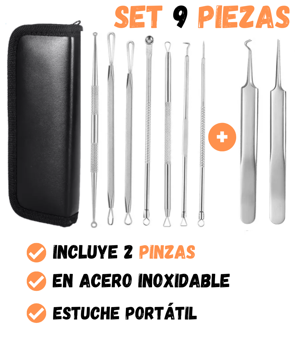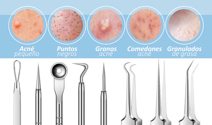 Sí, todas las herramientas están hechas de acero inoxidable de calidad quirúrgica, diseñadas específicamente para la extracción segura de espinillas y puntos negros sin causar daño a la piel.