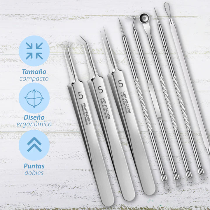 Kit completo con herramientas de calidad quirúrgica para unapiel más limpia y suave