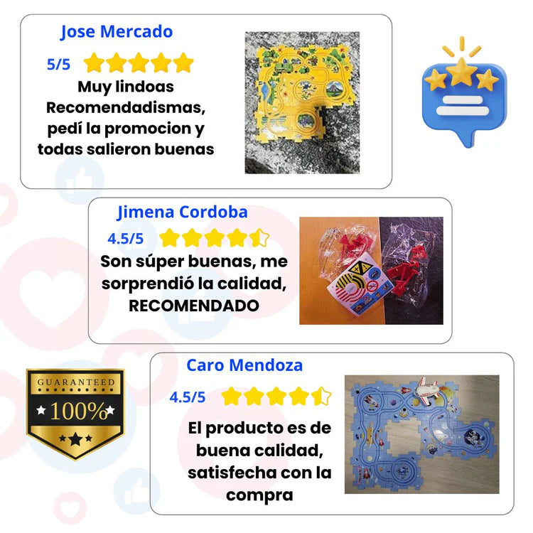 Confiamos en la calidad del Rompecabezas de Pista para Carrito, por lo que ofrecemos garantía contra defectos. Si hay algún problema, lo reemplazamos o te devolvemos el dinero. ¡Tu satisfacción es nuestra prioridad!